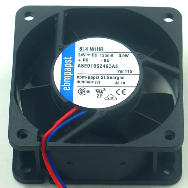 ebm-papst 3414NHH DC Ventilador 24V 92x92x25mm 60CFM 3.2W 39dBA 3250RPM Cableado